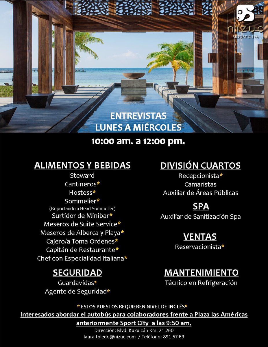 Vacantes De Trabajo Hotel Nizuc. Vacantes hoteles búsqueda entre 50.000+ vacantes actuales en colombia y en el extranjero rápido & gratis los mejores empleadores trabajo: Enjoy the mexican spirit at our cancun luxury resort.