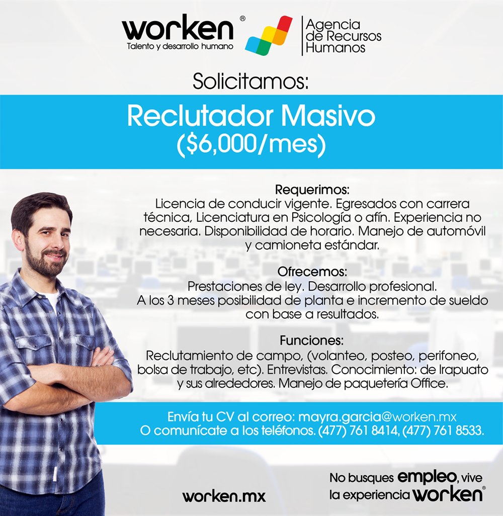 Vacantes De Trabajo Irapuato. Tenemos 32 ofertas de empleo en bumeran para ti, incluyendo ofertas en comercial, ventas y negocios. • tiempo completo, medio y parcial • salario competitivo • trabajo: