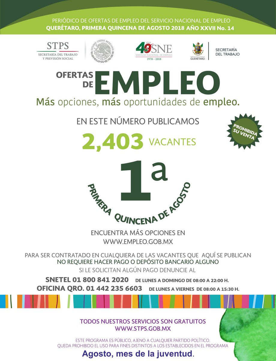 De mx, queretaro, puebla, hidalgo, morelos, tlaxcala.entre otros, tenemos 300 vacantes para cada estado. Ofertan más de 2 mil vacantes en feria nacional del empleo en corregidora. ¿está buscando trabajos, vacantes en querétaro, querétaro de arteaga? A 05 de noviembre de 2020.