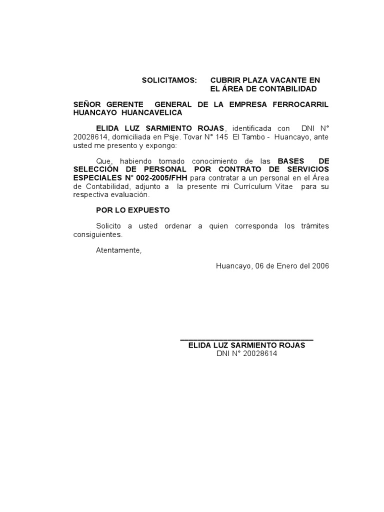 Solicitud De Plaza Vacante De Trabajo. Puedes descargar las plazas vacantes y presentar tu solicitud para un puesto en concreto, o enviarnos tu currículum para que sea almacenado en nuestra base de datos. Un modelo de carta de solicitud de trabajo debe tener como finalidad la de crear una muy buena imagen y una buena impresión de quien la escribe.