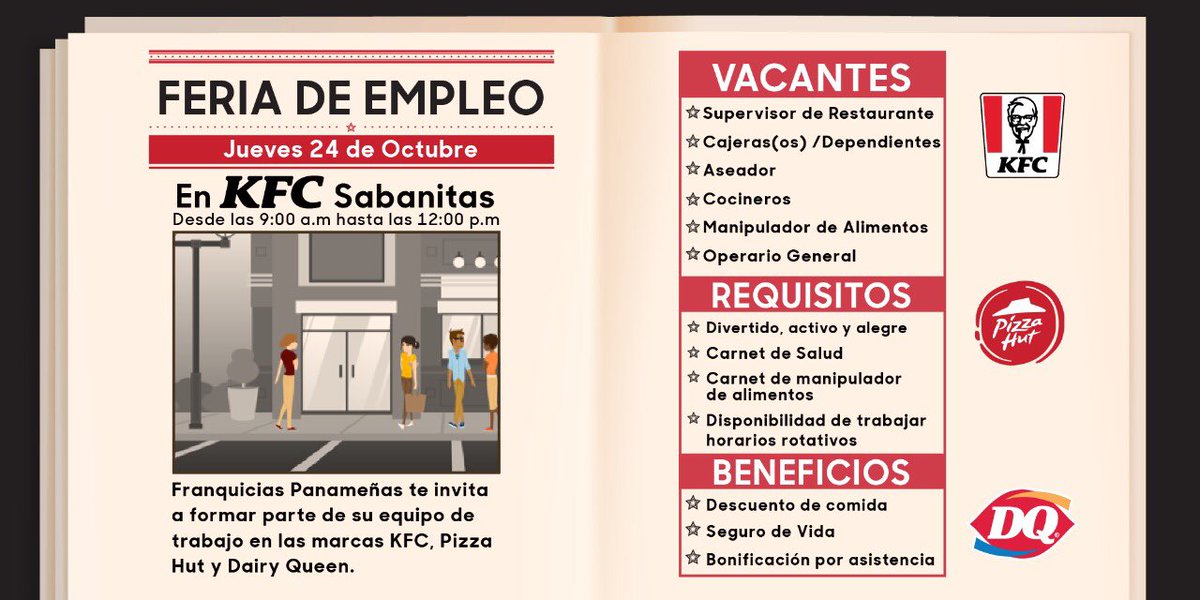 Descubre qué funciona bien en kfc con las personas que mejor la conocen. Empresa kentucky dominicano solicita personal para trabajar en el area de facturacion, si estas interesado en pertenecer a esta familia. Kfc panama siempre tiene sus manos abiertas a la oportunidades de empleos, si deseas trabajar en kfc, postulate aqui. Para aplicar a estas vacante se requiere que su cv esté registrado en costa rica.